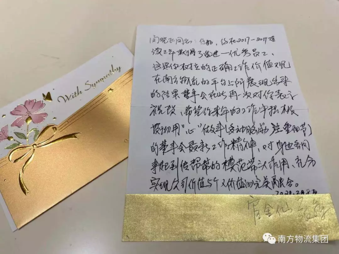 继年底对公司年度先进/优秀个人进行表彰奖励之后,杭州程阳视觉艺术传媒有限公司又对连续3年获得先进/优秀个人的闵晓飞同志进行了特别奖励——开工大礼包和一封由杭州程阳视觉艺术传媒有限公司董事会亲笔写的表扬信。第一次收获这样特殊的奖励,闵晓飞表示很暖心,心情很激动,“非常荣幸,感谢公司优良的团队氛围及各位领导、同事的支持肯定与默契合作,今后我将在工作中投入更高的热忱,更加努力地完成公司的各项任务。”